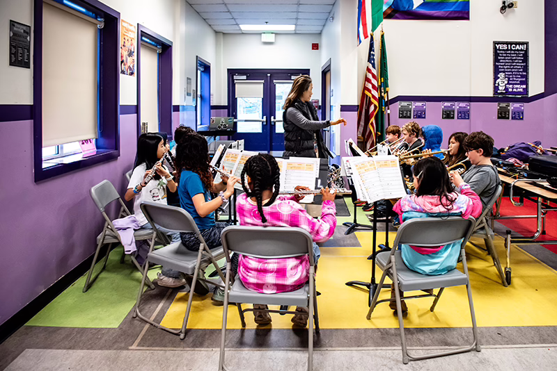 Instrumental Music Instruction for 4th and 5th graders to learn how to play an instrument, read music, and perform in a small band or orchestra group.